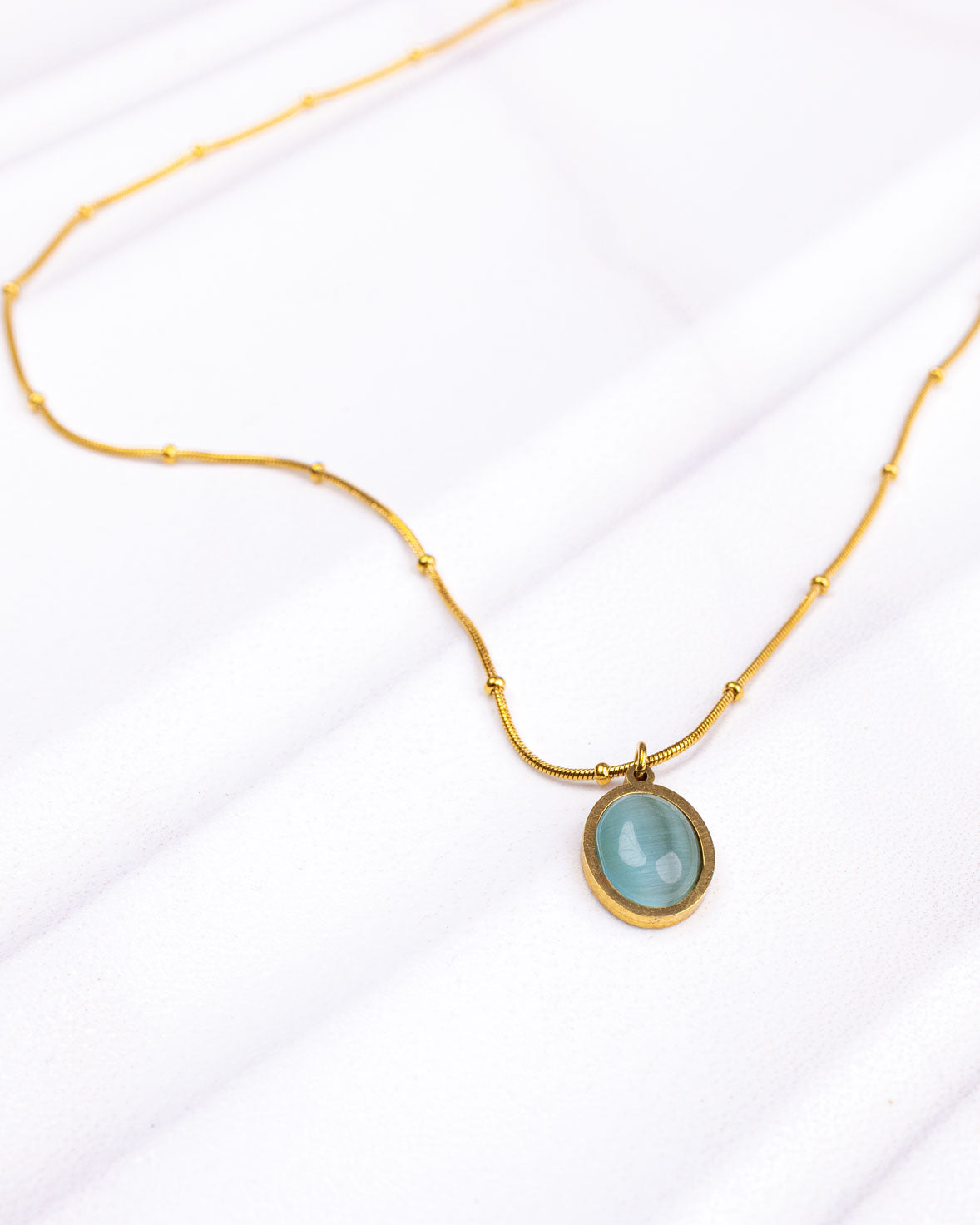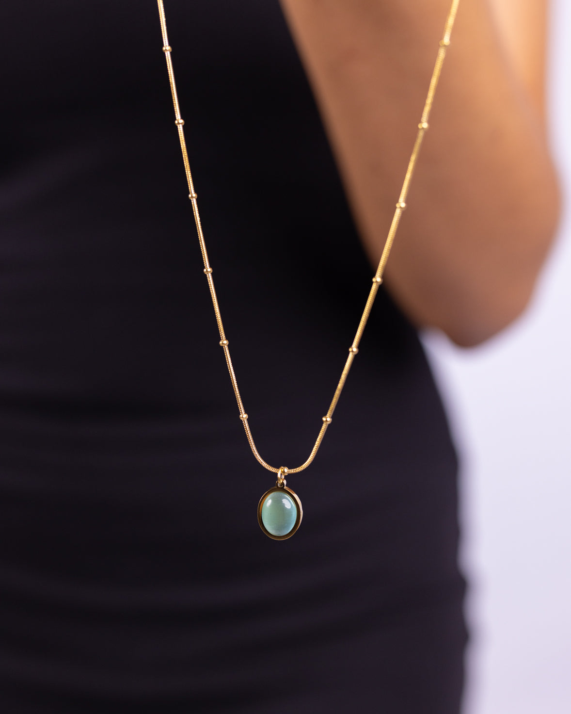 The Classic Vintage Oval Necklace brings a touch of color and elegance to any outfit with its stunning stone pendant.