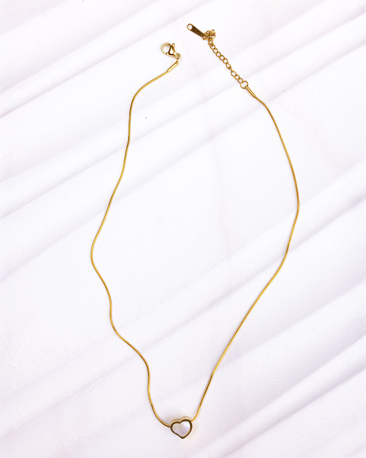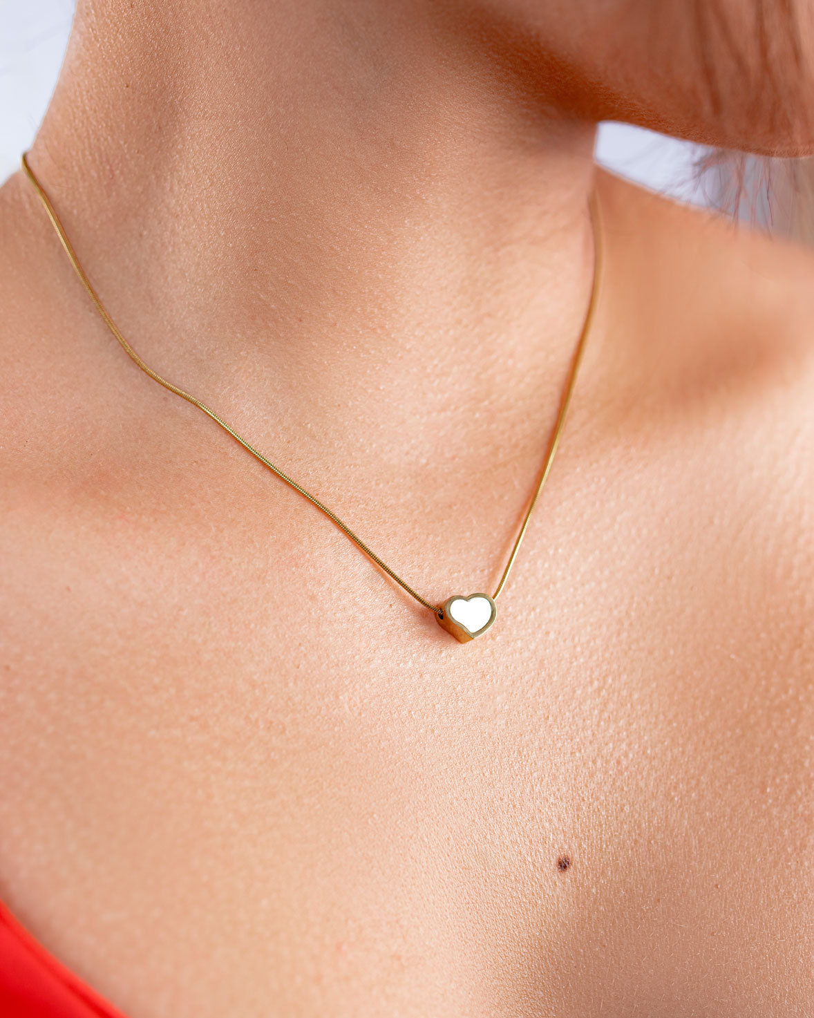 The Minimalist White Heart Necklace is a simple yet elegant piece with a pop of love, perfect for adding a touch of color to any outfit.