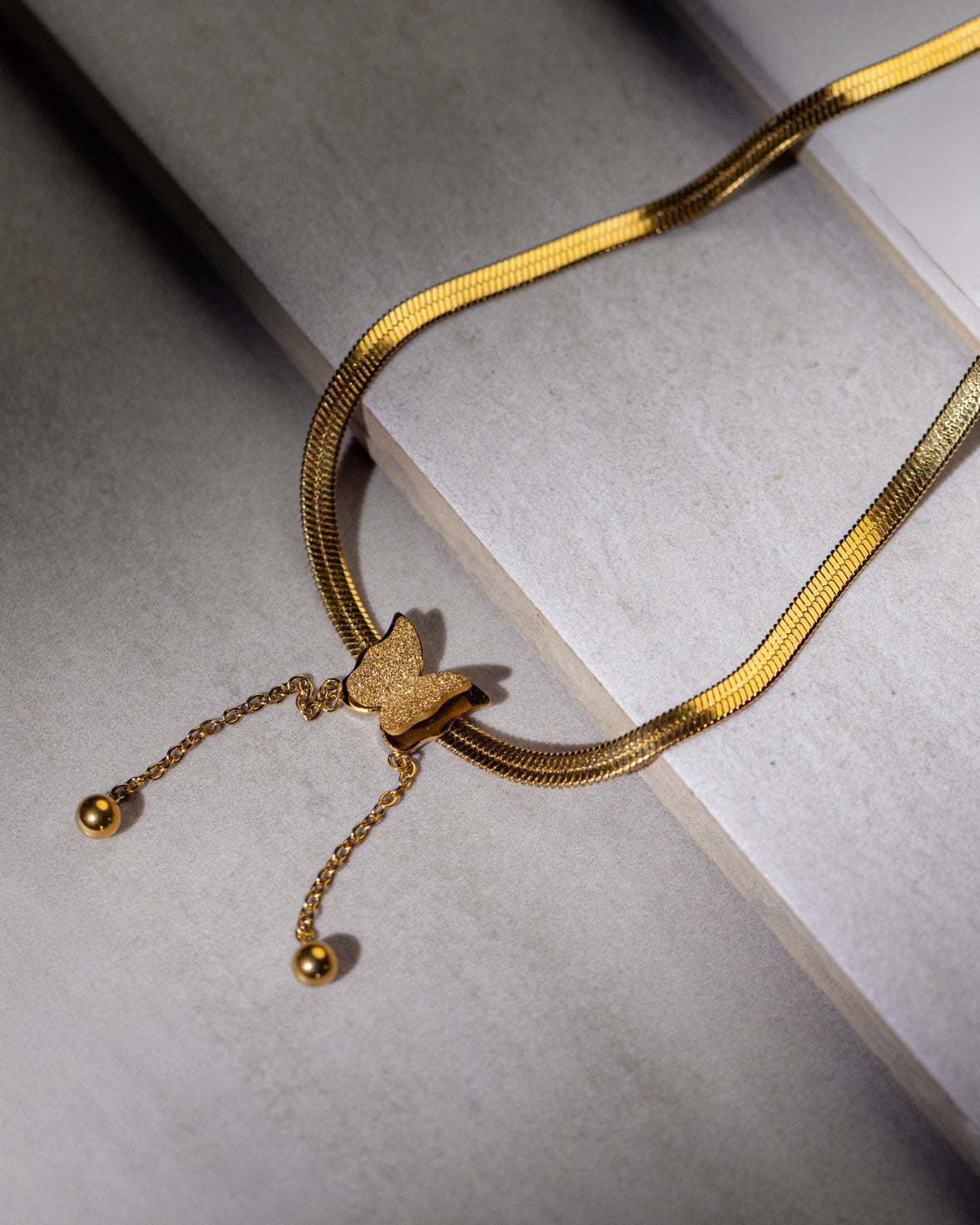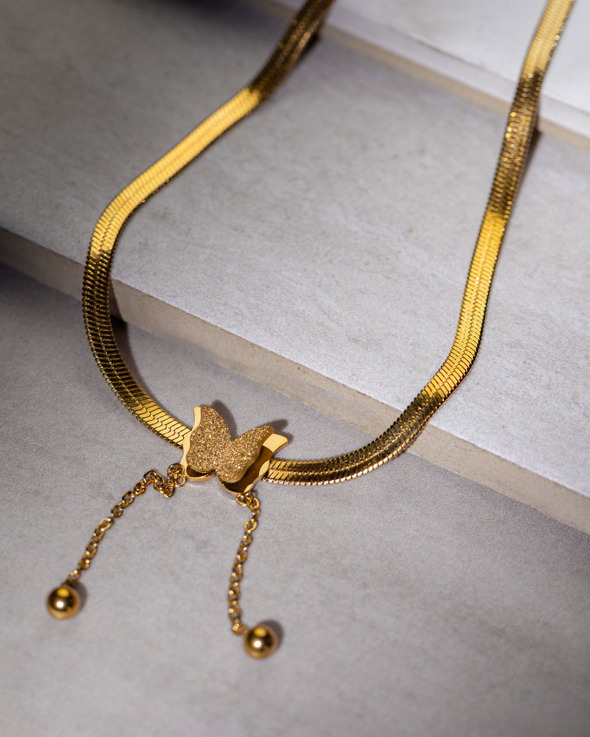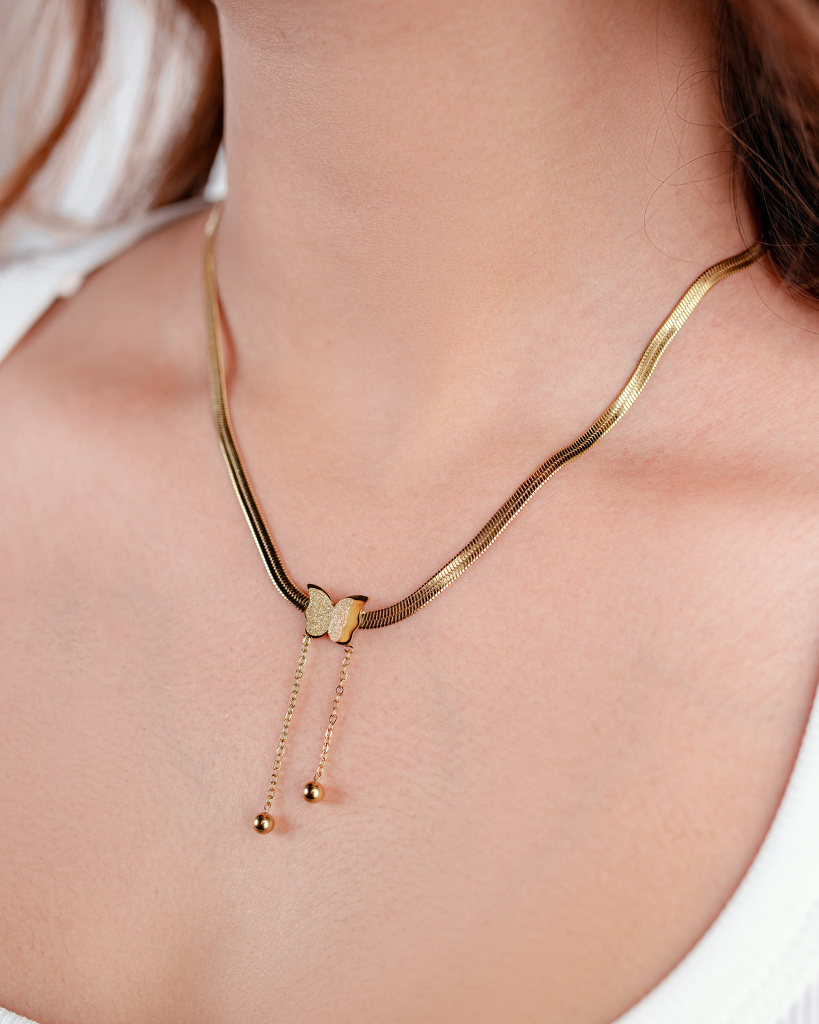 Light and graceful, this gold-plated butterfly charm necklace brings a soft, feminine touch to your everyday style.