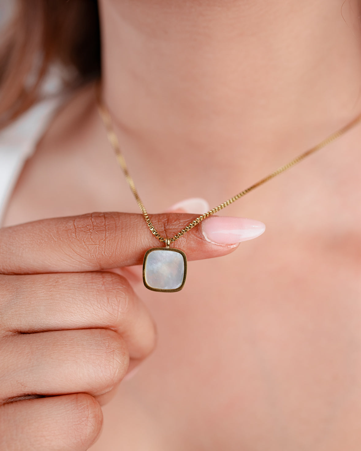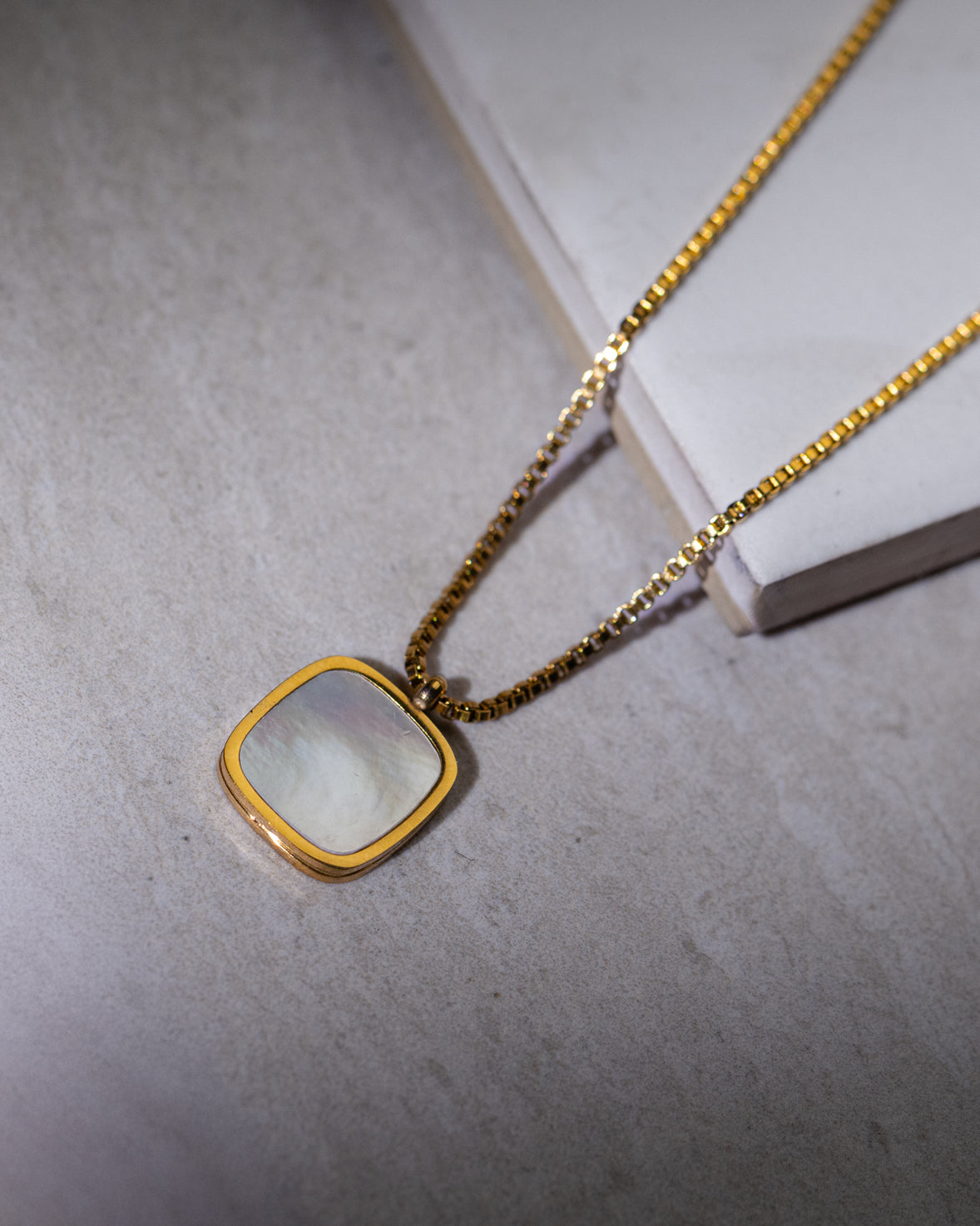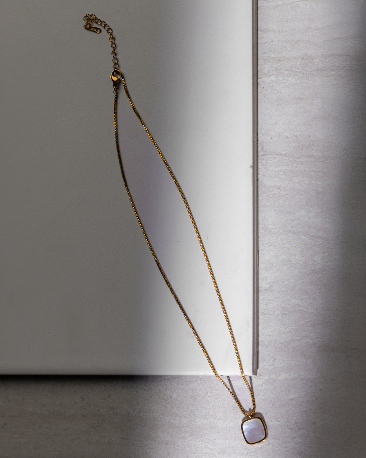 Elegant and refined, this gold-plated pendant necklace with a classic white charm adds a graceful touch to any look.