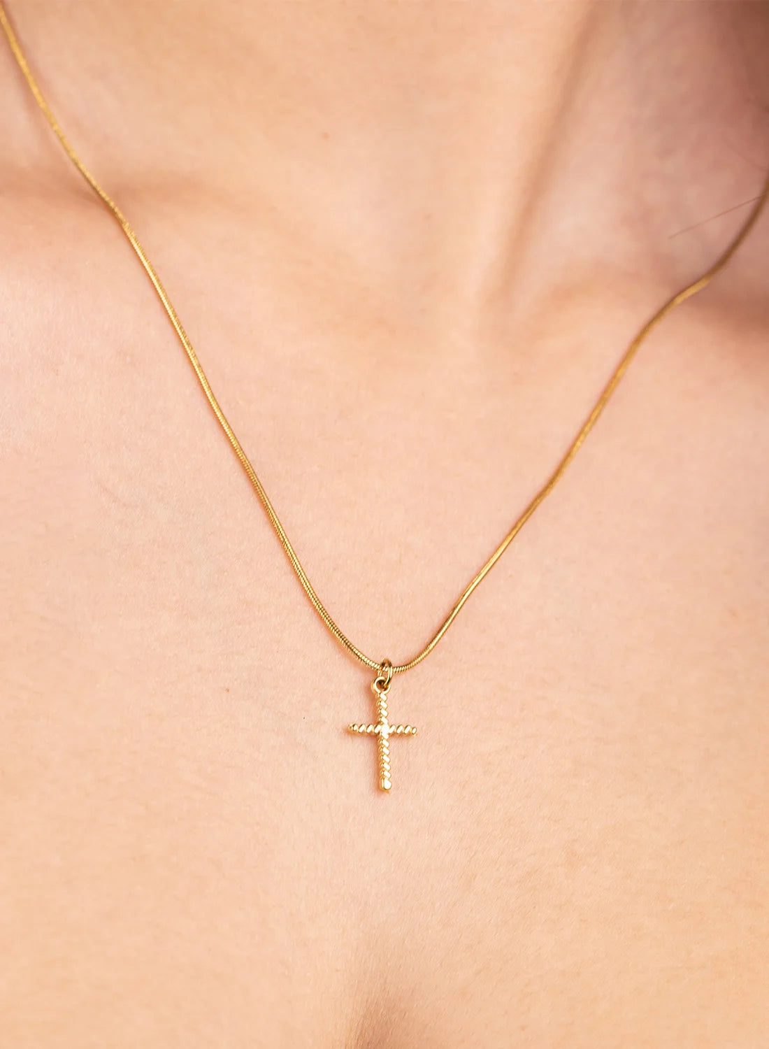 A sleek and refined necklace designed for understated elegance. Featuring a delicate cross pendant on a thin snake chain, this piece blends minimalism with timeless style — a perfect B Classy accessory for everyday sophistication.