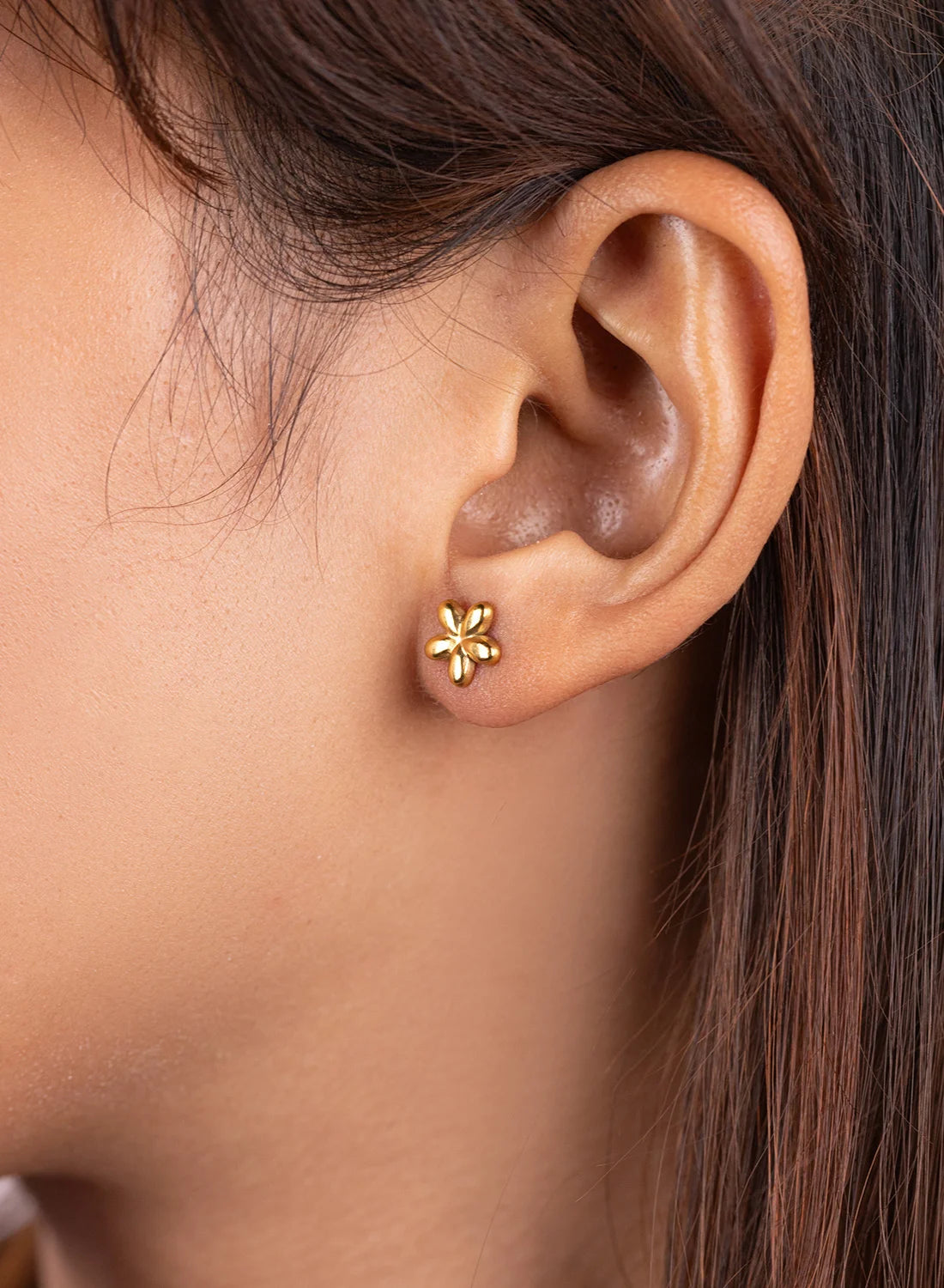 A delicate design inspired by the beauty of blooming flowers. These elegant gold earrings feature a charming floral detail that adds a soft, graceful touch to any outfit — a perfect blend of femininity and B Classy sophistication.