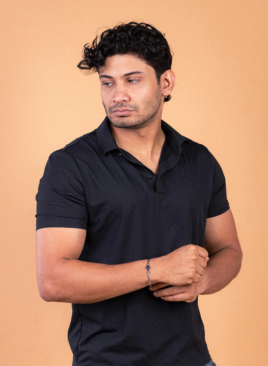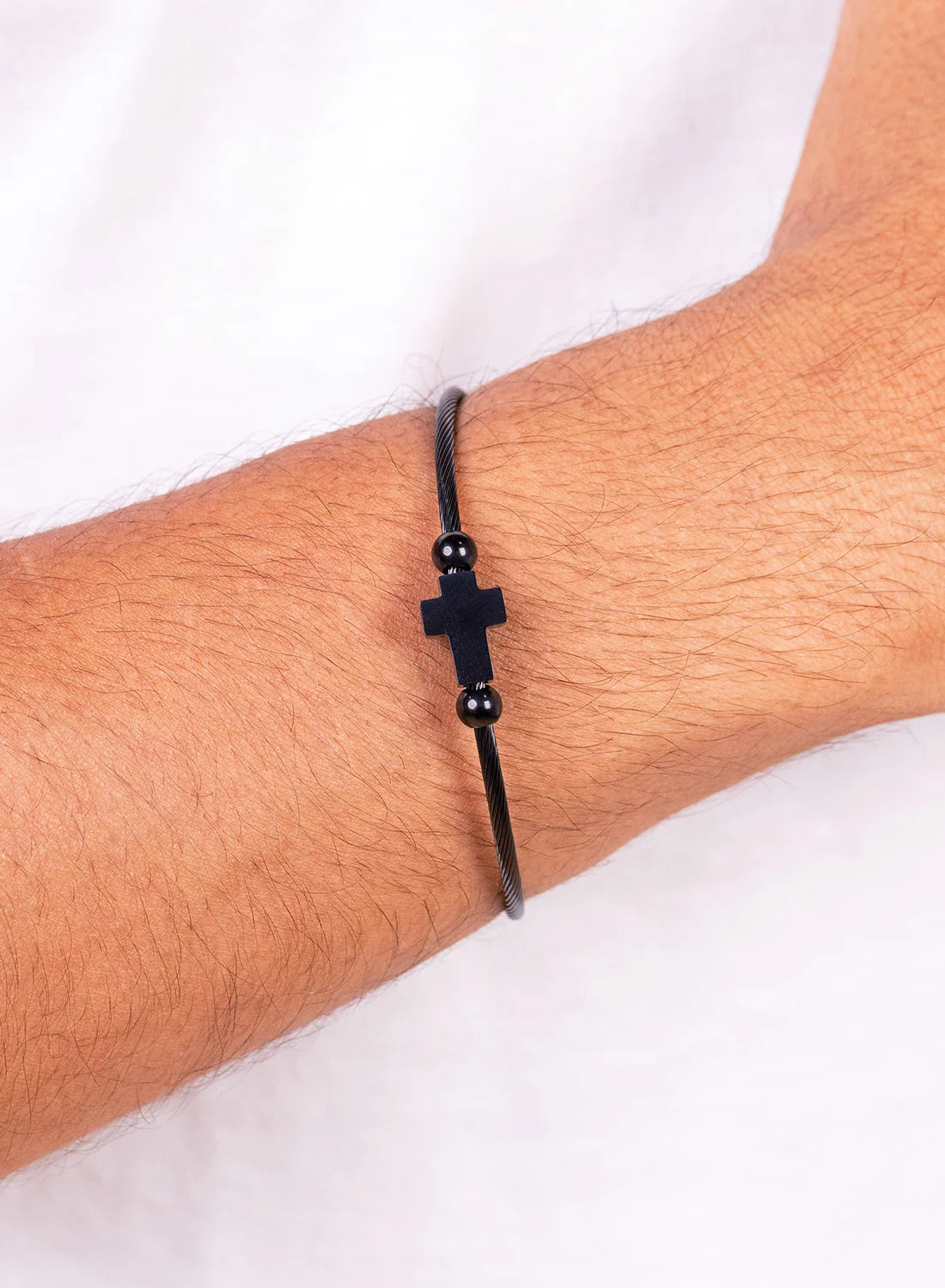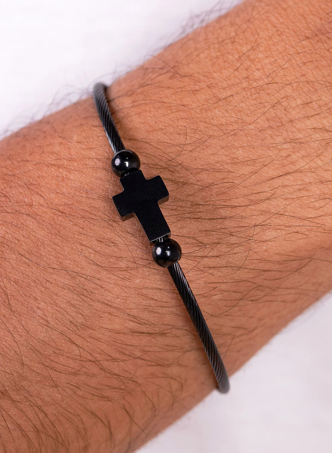 A bold and refined cuff designed for men who prefer clean structure with meaningful detail. Featuring a sleek open bangle design with a subtle cross accent, this piece delivers a strong, modern statement — the true B Classy standard.